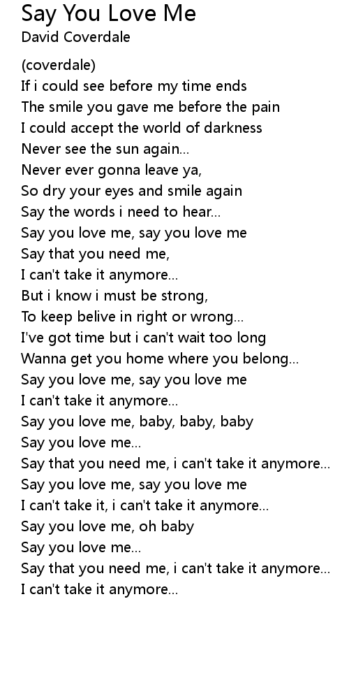 Say you love me, say you love me |
