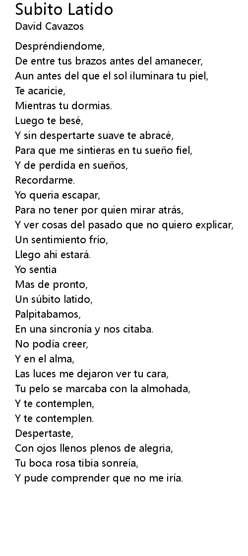| Un súbito latido, | |