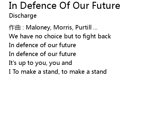 | Song | In Defence Of Our Future |