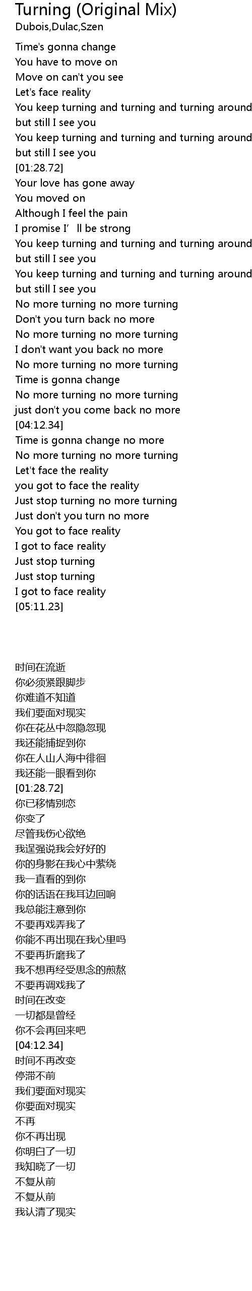 | [04:36.74] | No more turning no more turning |
