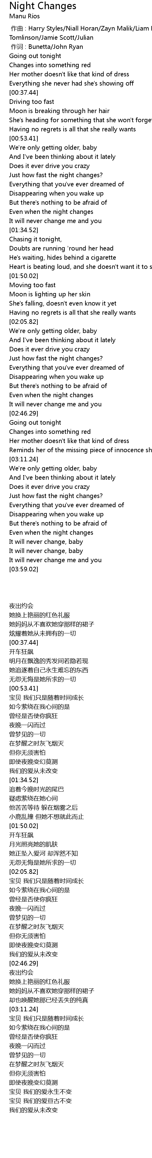| [00:00.00] | zuò qǔ : Harry Styles Niall Horan Zayn Malik Liam Payne Louis Tomlinson Jamie Scott Julian |