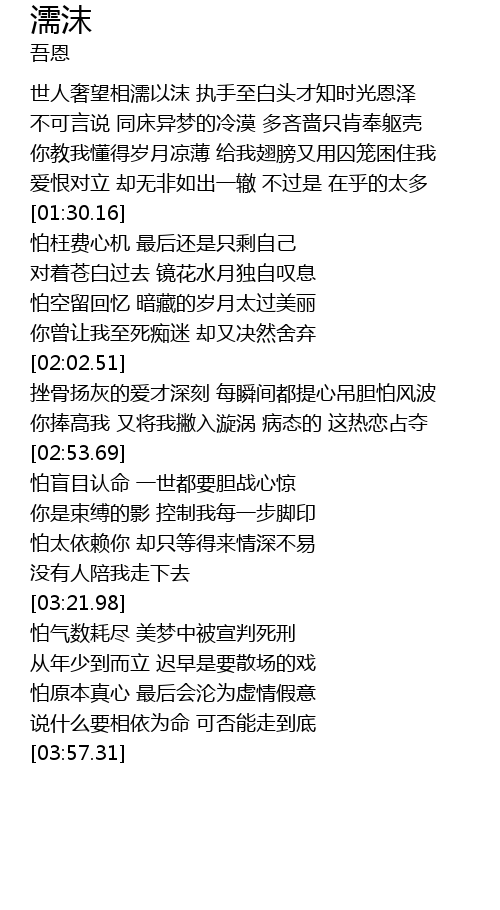 | [00:36.64] | 世人奢望相濡以沫 执手至白头才知时光恩泽 |