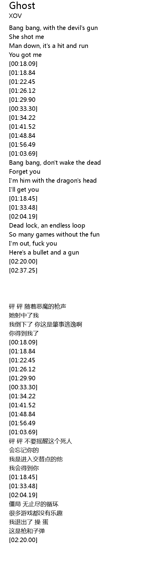 | [00:56.53][01:56.49][03:00.16] | Oh oh oh, you are the ghost, ghost |