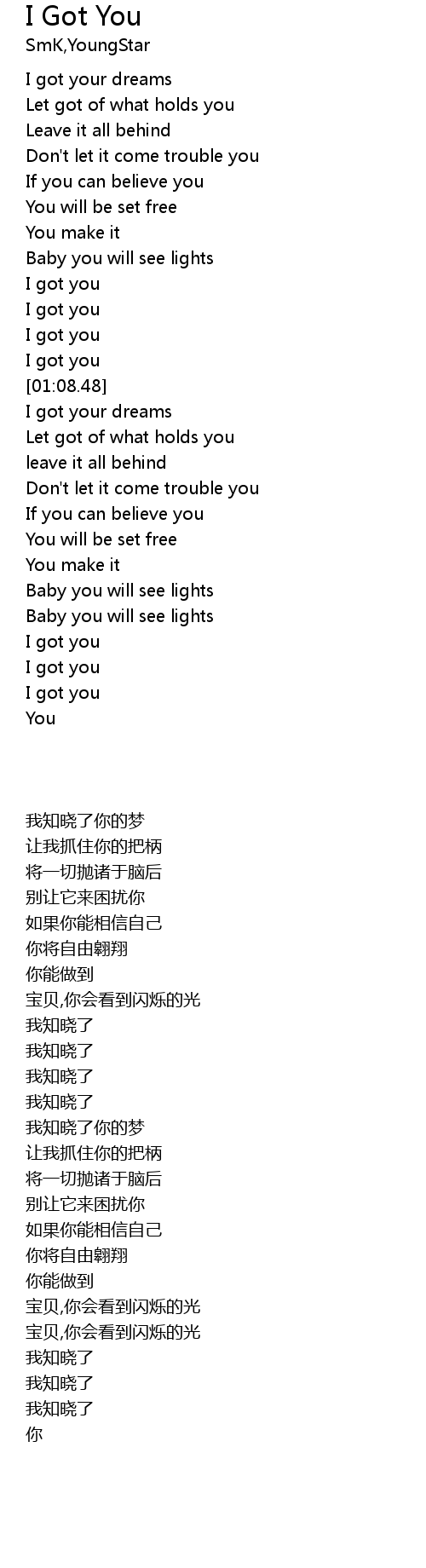 | [00:41.67] | Baby you will see lights |
