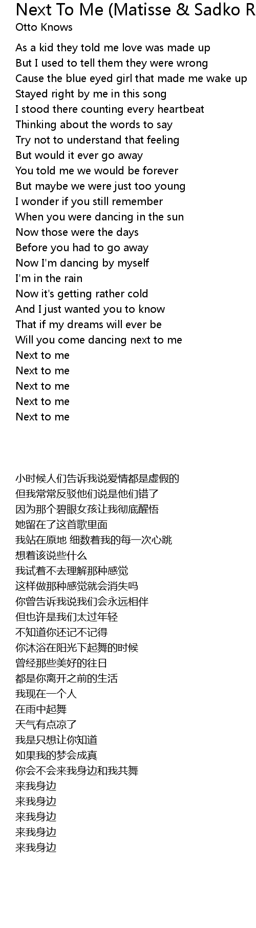 Will you come dancing next to me |