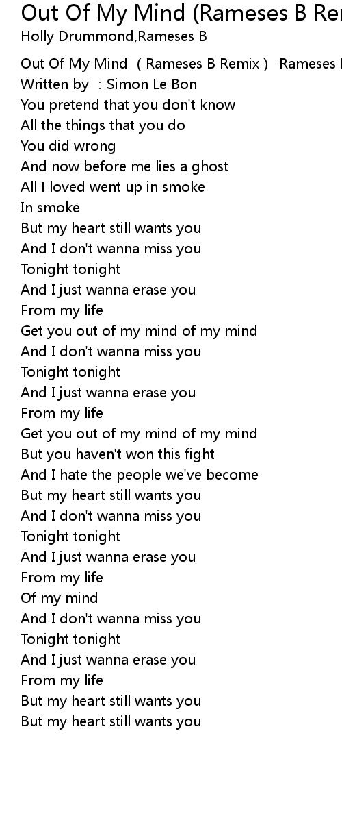 | [00:00.00] | Out Of My Mind Rameses B Remix Rameses B Holly Drummond |