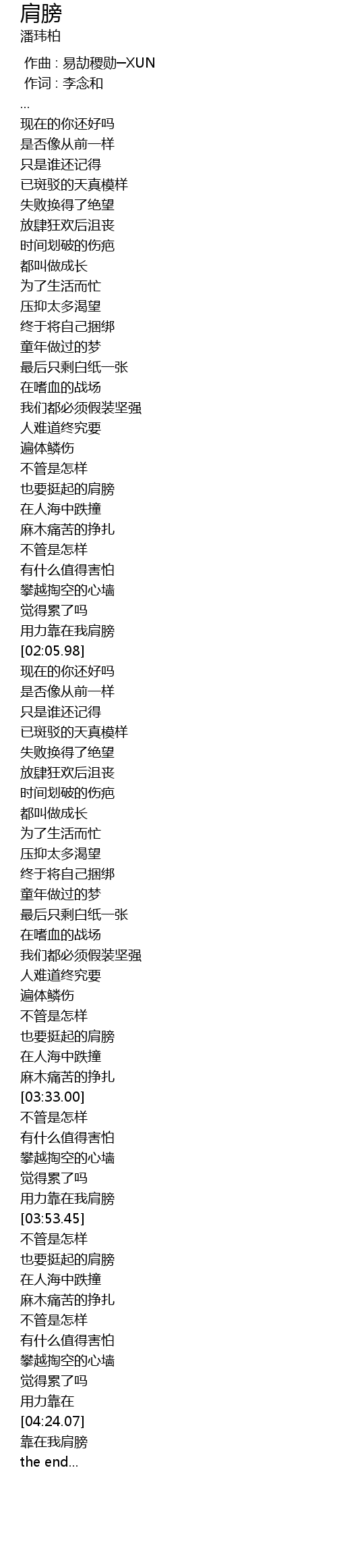 | [04:27.58] | 靠在我肩膀 |