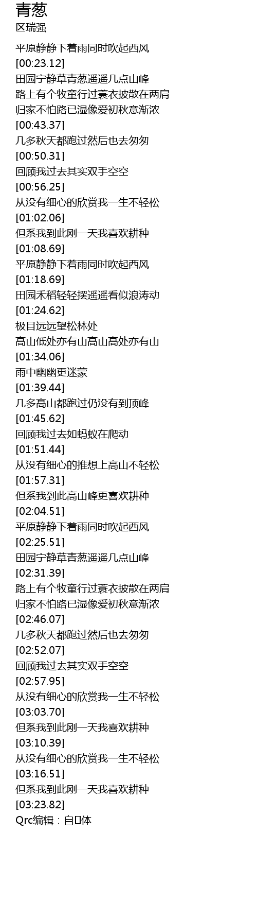 | [00:23.93] | 田园宁静草青葱遥遥几点山峰 |