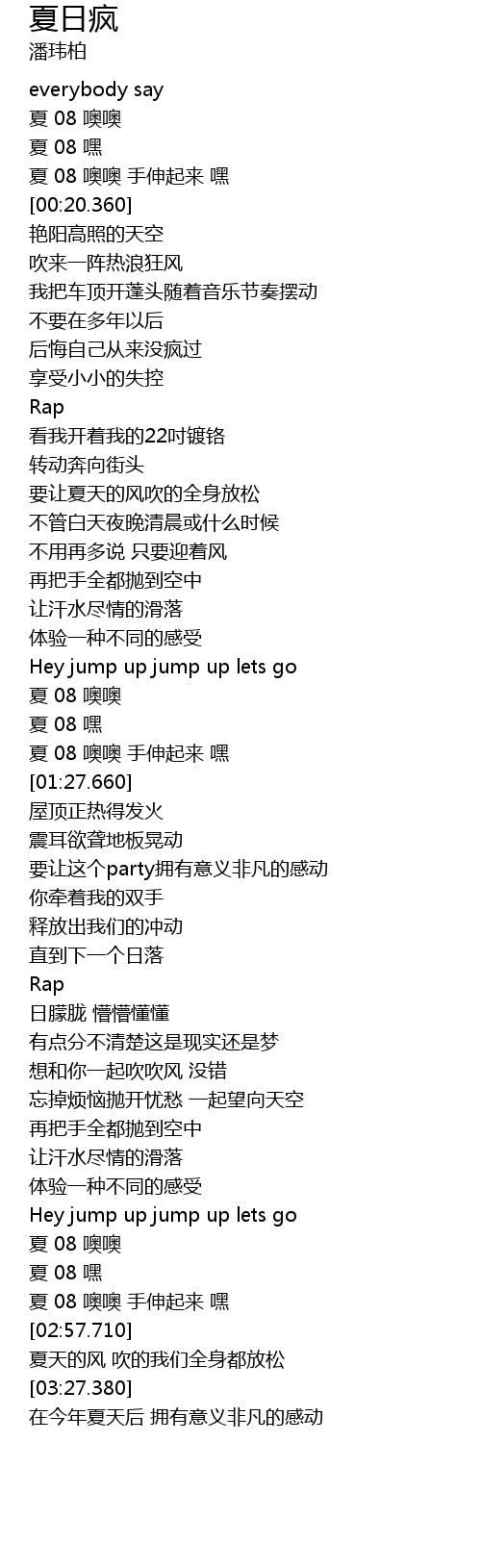 | [01:21.450] | 夏 08 噢噢 手伸起来 嘿 |