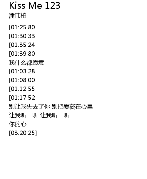 | [02:09.05][01:25.80][00:24.54] | KISS ME123 我最爱的那个你 |