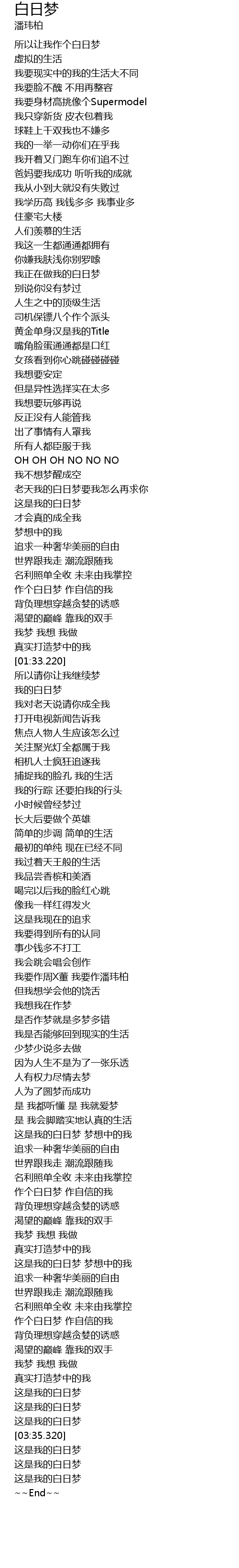 | [01:35.300] | 我的白日梦 |