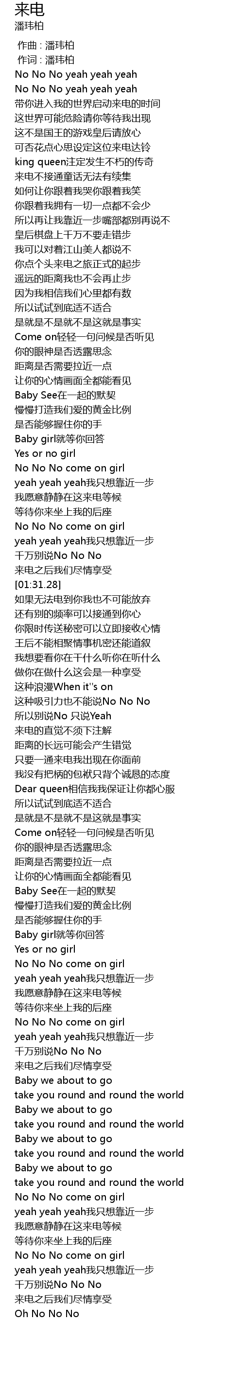 | [02:01.25] | 来电的直觉不须下注解 |