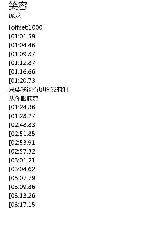 | [02:17.13][01:01.59][00:21.70] | cong lai mei you guo de xiao rong |
