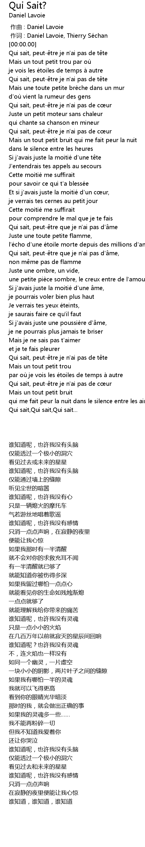 | [04:26.60] | Qui sait, Qui sait, Qui sait... |