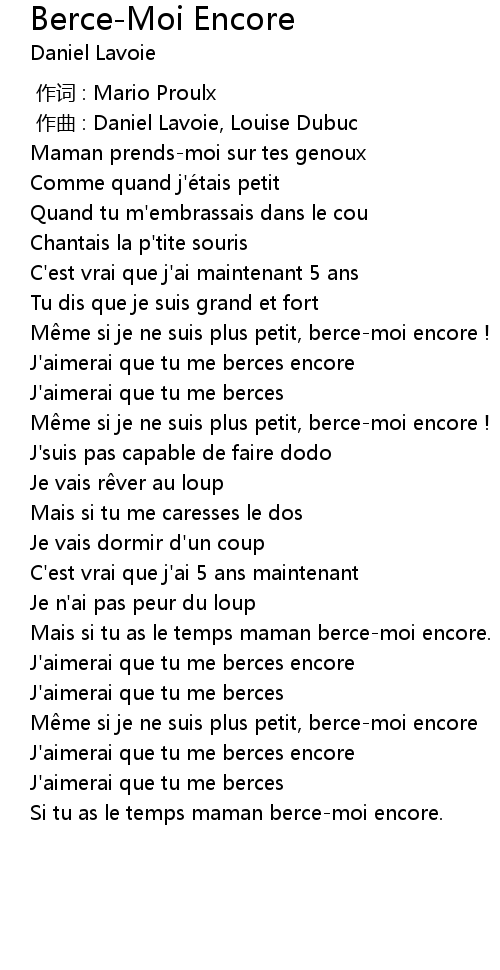 | [00:36.63] | M me si je ne suis plus petit, bercemoi encore ! |