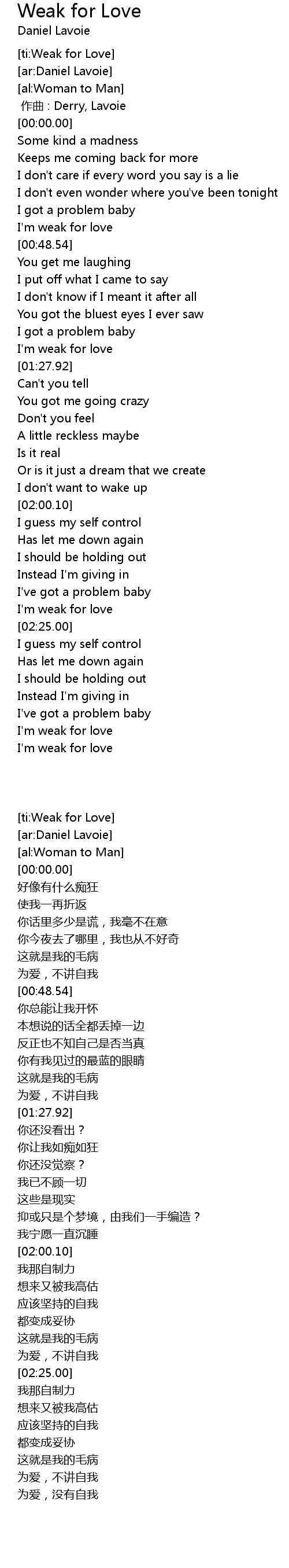 | [00:44.14] | I' m weak for love |