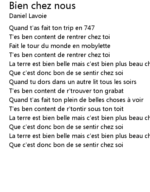 | [02:09.52] | Que c'est donc bon de se sentir chez soi |