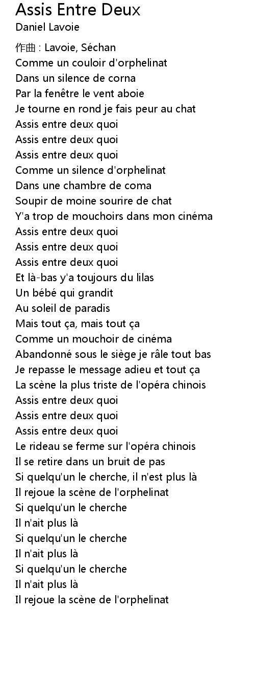 | Song | Assis Entre Deux |