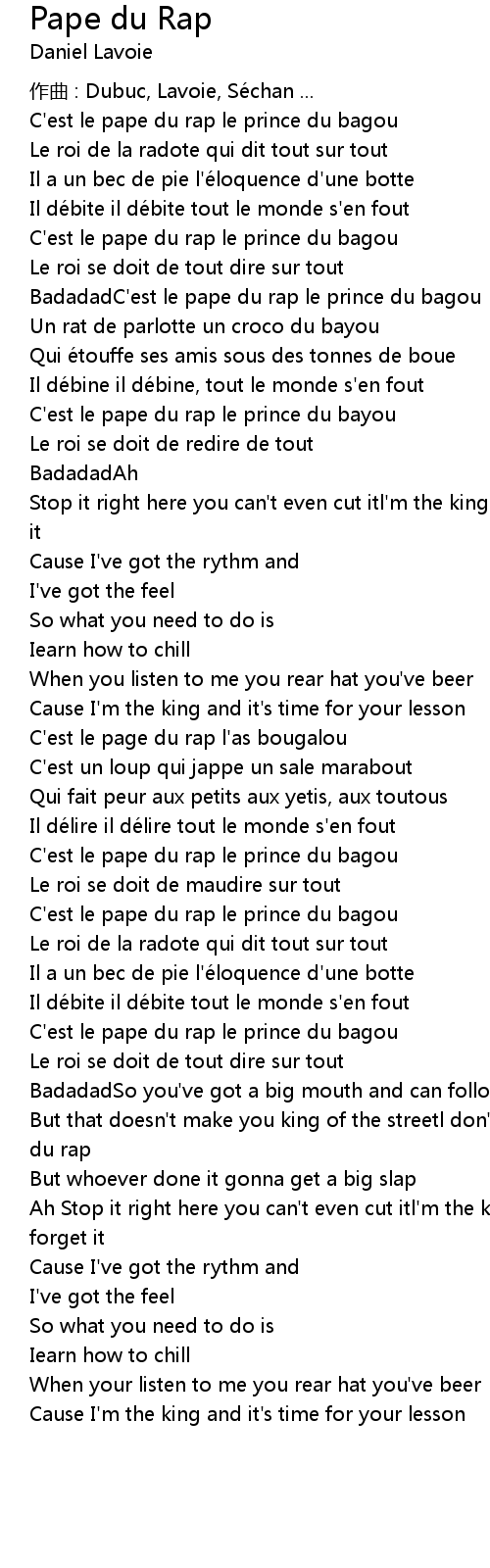 | But that doesn' t make you king of the streetl don' t know who made you the pape du rap | |