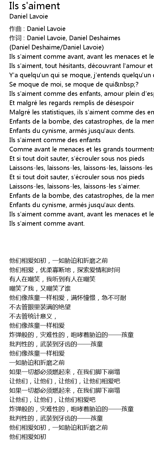 | zuò cí : Daniel Lavoie, Daniel Deshaimes | |