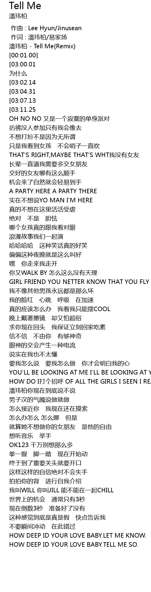 | [00:00.50] | pan wei bai Tell Me Remix |