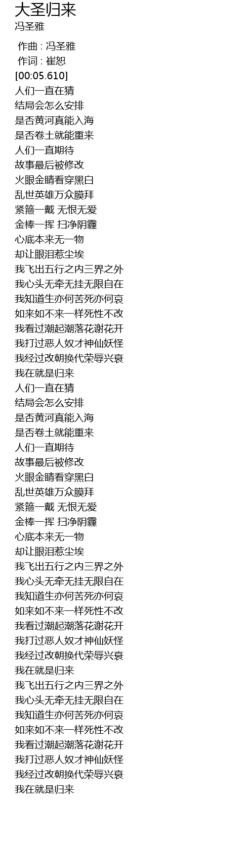 | [03:05.360] | 我飞出五行之内三界之外 |