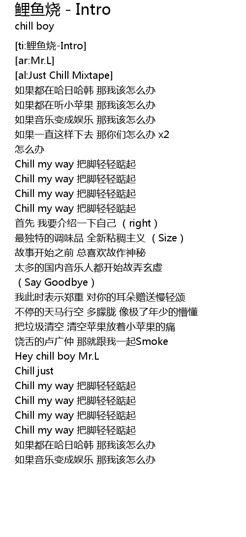 | [00:49.70] | Chill my way ba jiao qing qing dian qi |