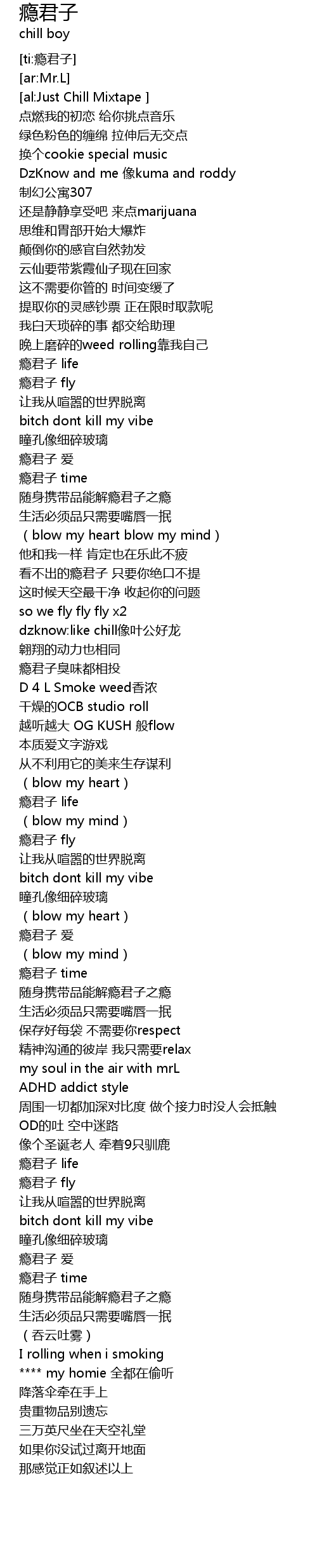 | [02:34.28] | yuè tīng yuè dà OG KUSH bān flow |