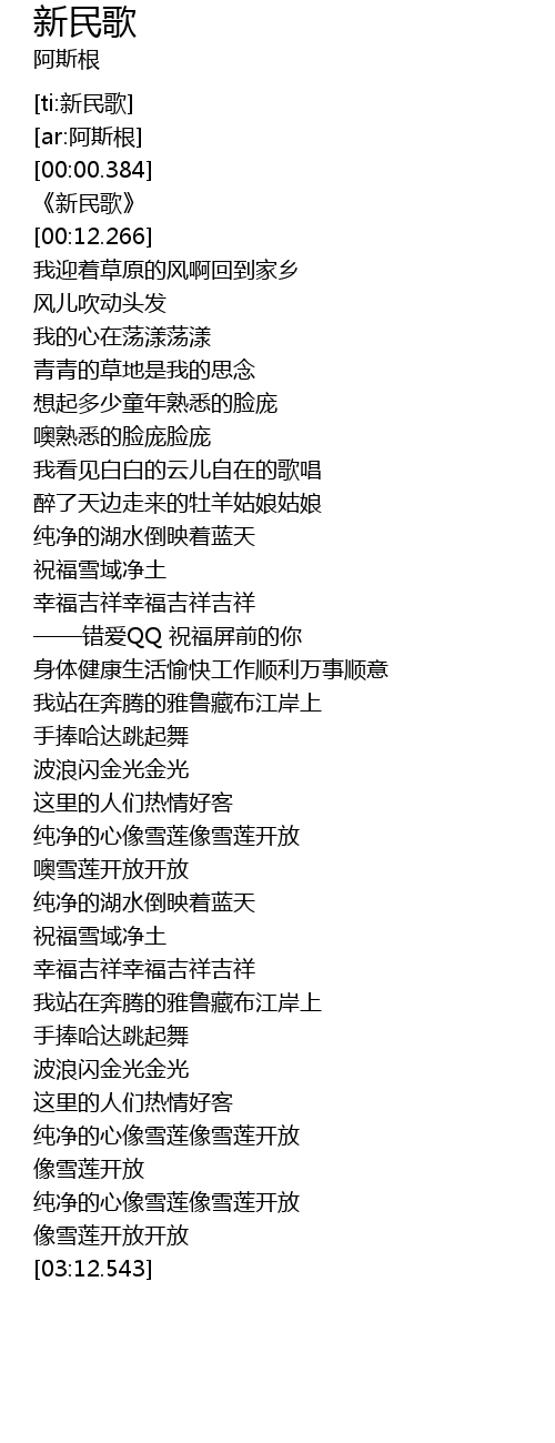 | [03:03.655] | 纯净的心像雪莲像雪莲开放 |