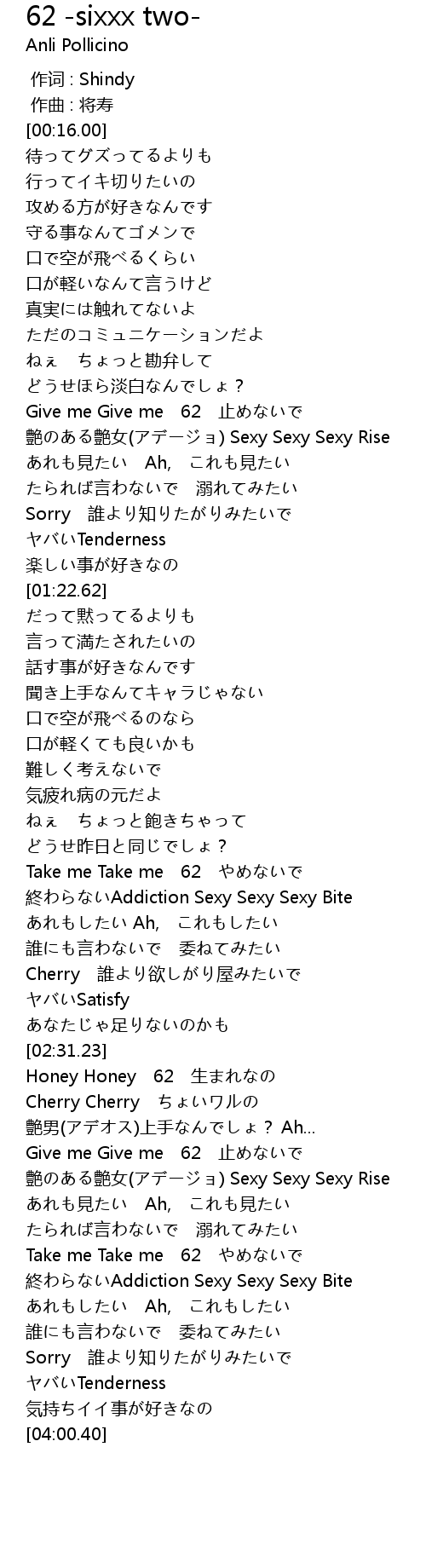 | [00:54.81] | Give me Give me 62 止めないで |