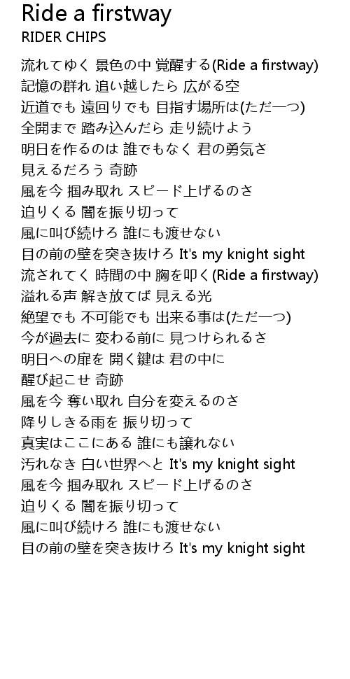 | 流れてゆく 景色の中 覚醒する(Ride a firstway) | |