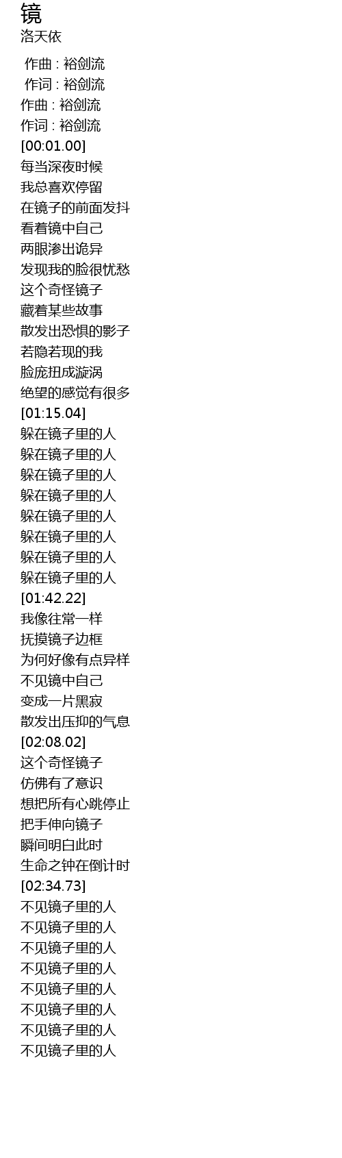 | [01:38.60] | 躲在镜子里的人 |