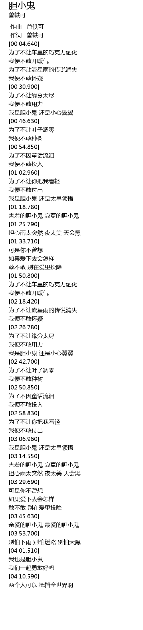 | [04:03.150] | 我也是胆小鬼 |