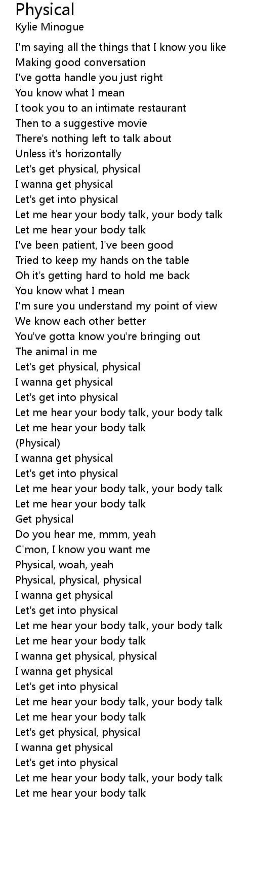I wanna get physical, physical |
