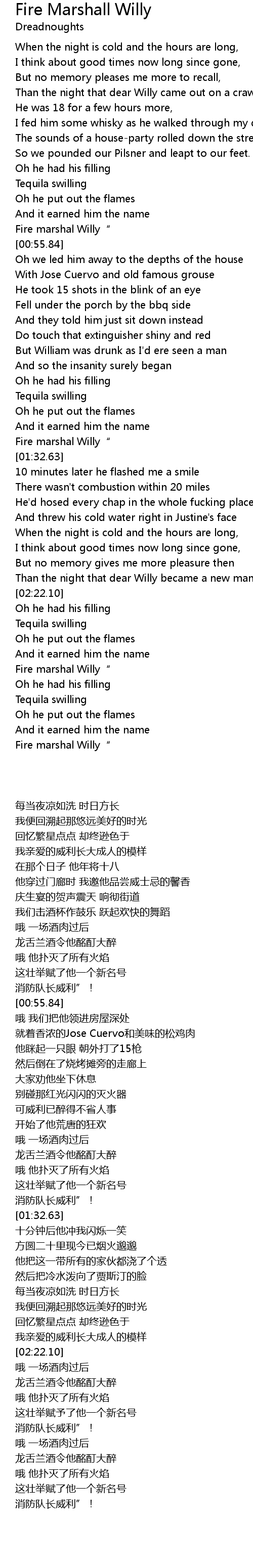 | [00:52.10] | Fire marshal Willy" |