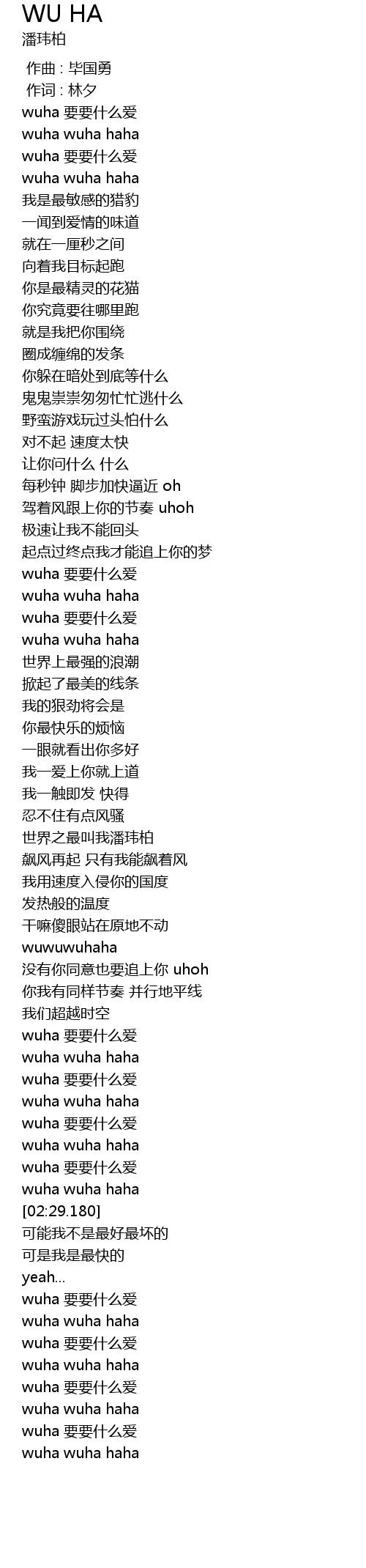 | [01:40.760] | 世界之最叫我潘玮柏 |