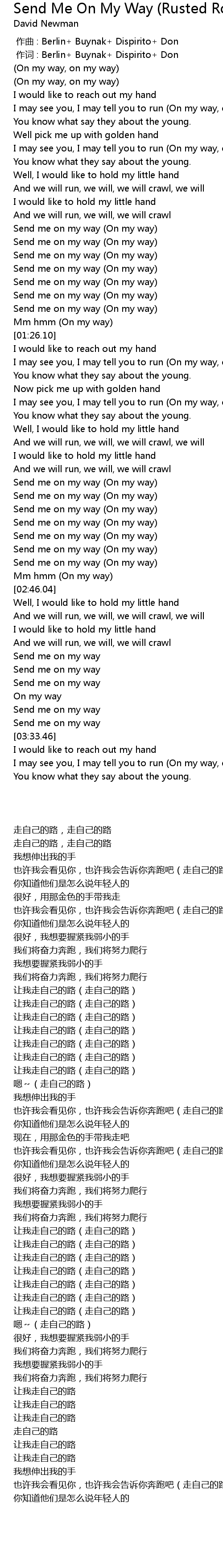 | [00:38.93] | I may see you, I may tell you to run On my way, on my way |