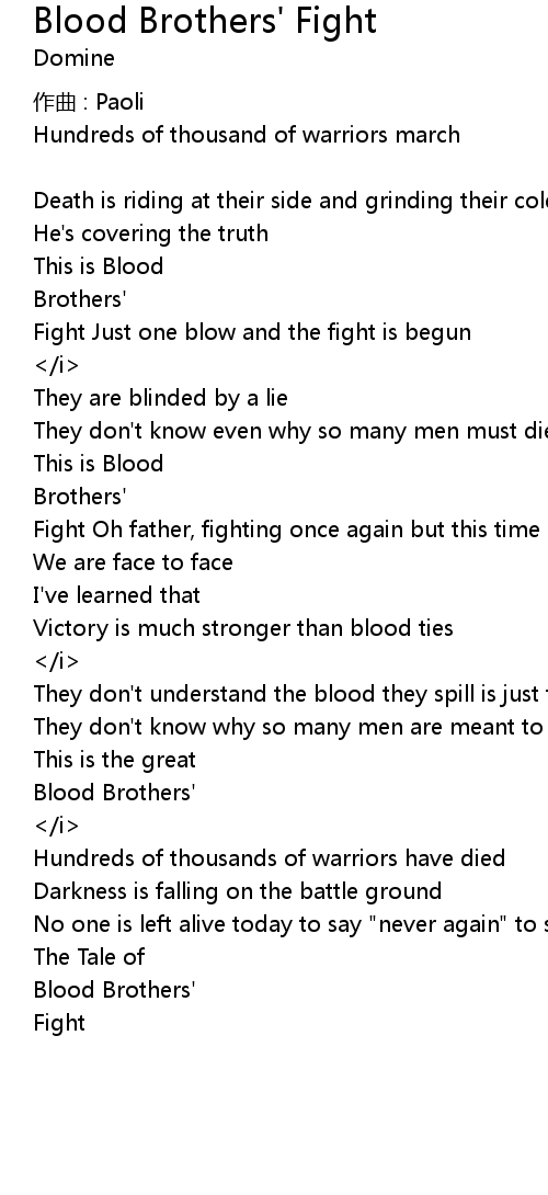 | Song | Blood Brothers' Fight |