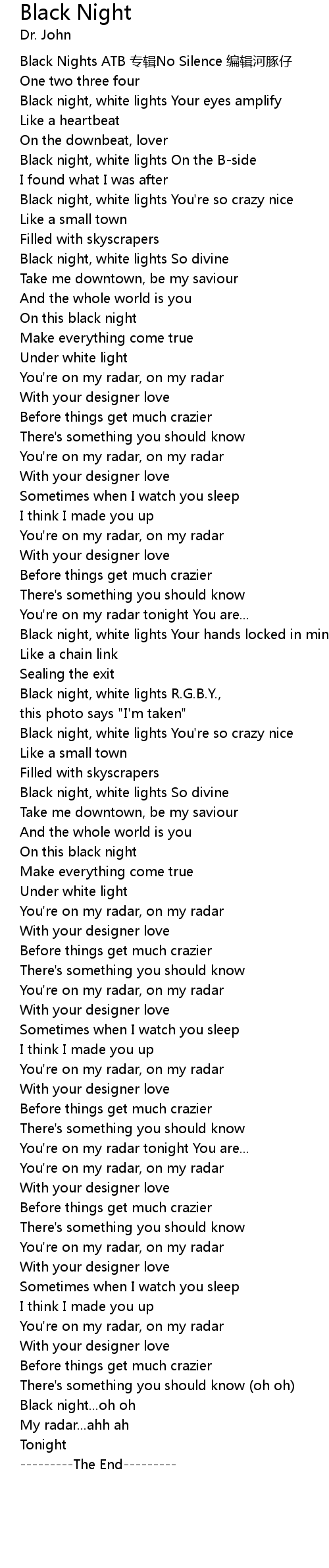 | [01:03.50] | Black night, white lights You're so crazy nice |