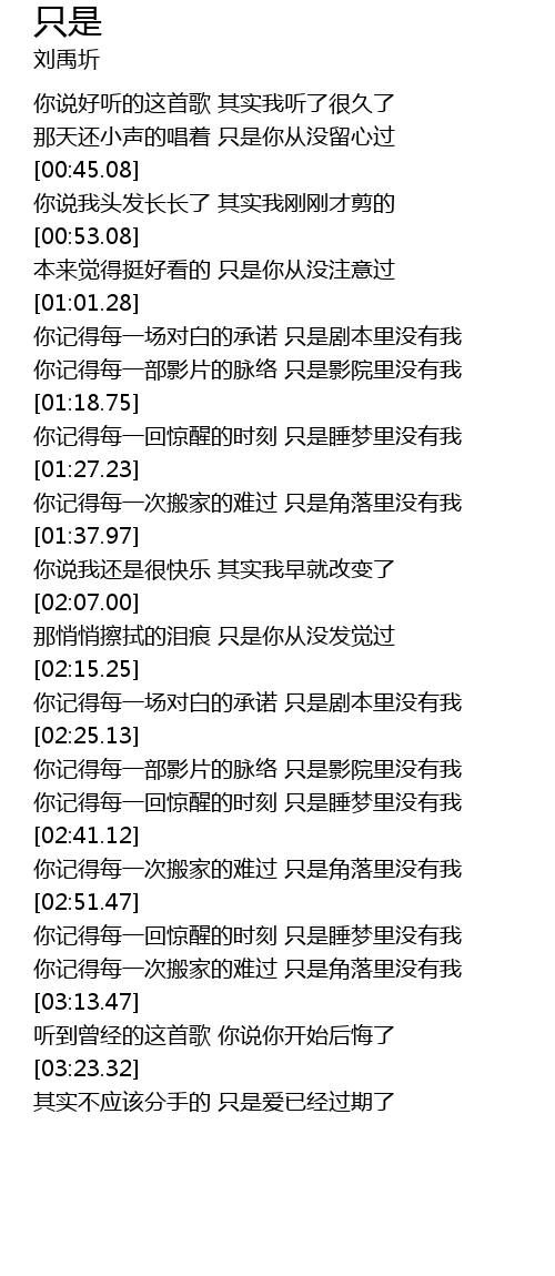 | [00:45.85] | 你说我头发长长了 其实我刚刚才剪的 |
