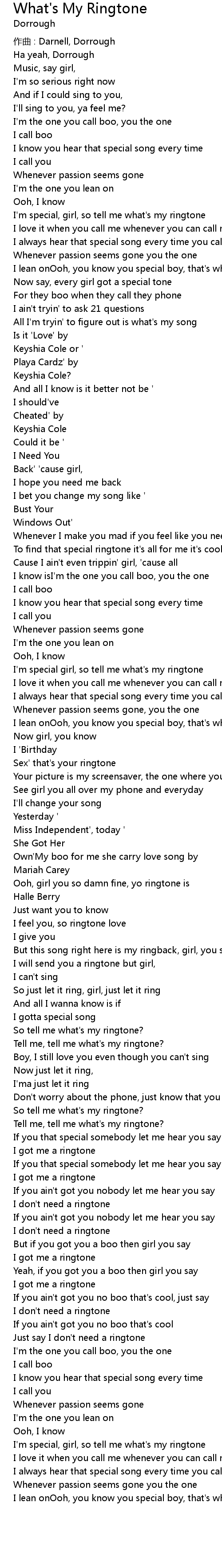 | Tell me, tell me what' s my ringtone? | |