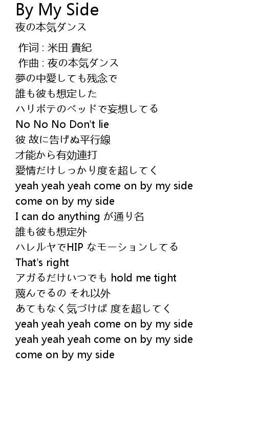 | [00:53.00] | yeah yeah yeah come on by my side |