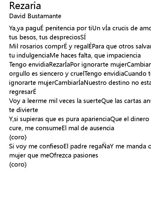 | Mil rosarios comprÉ y regalÉPara que otros salvaran mi feY aÚn no encuentro tu indulgenciaMe haces falta, que impaciencia | |