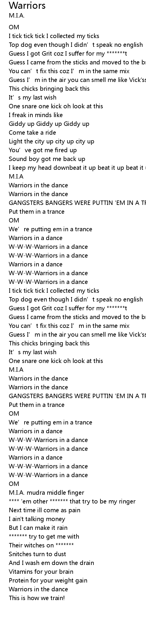 | [01:32.18] | W-W-W-Warriors in a dance |