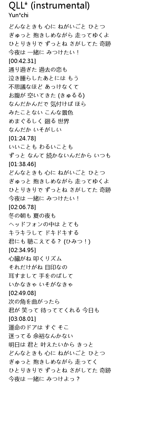 ひとりきりで ずっとね さがしてた 奇跡 |