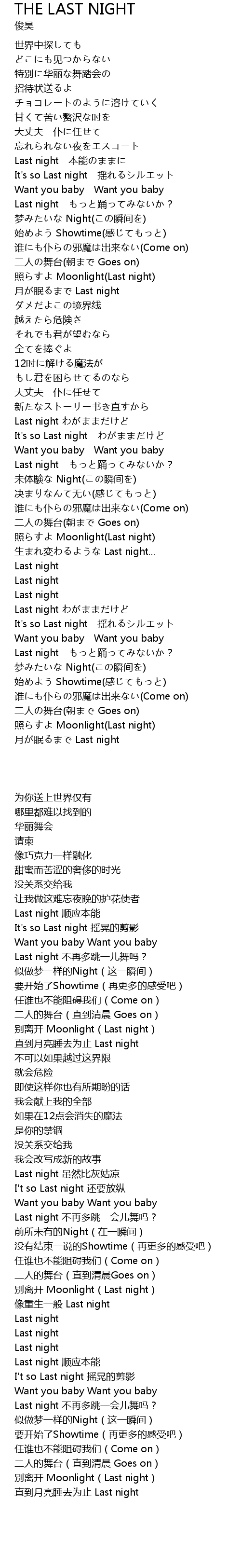 | [03:18.54] | Last night もっと踊ってみないか? |