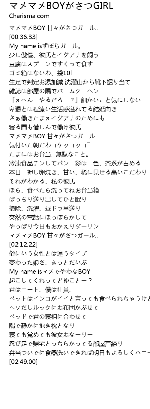 | [02:00.37] | マメマメBOY 甘々がさつガール… |