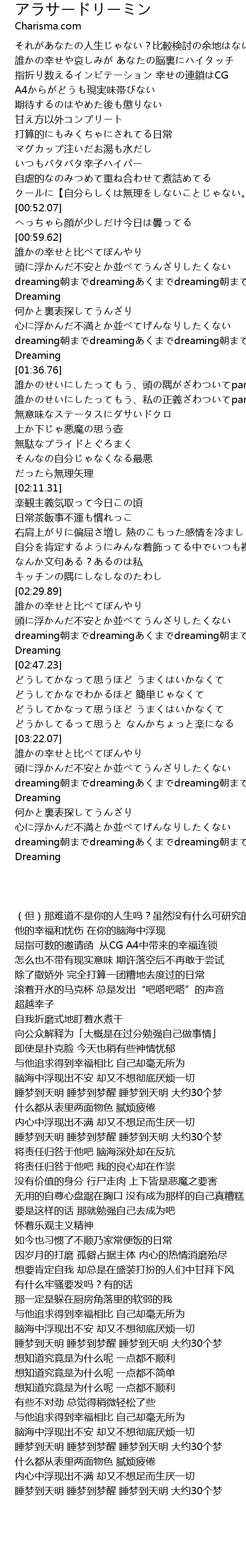 | [03:30.99] | dreaming朝までdreamingあくまでdreaming朝までAround 30 Dreaming |