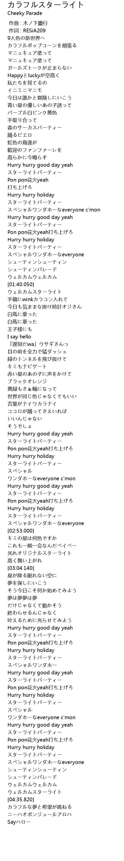| [01:18.630] | スペシャルワンダホーなeveryone c'mon |