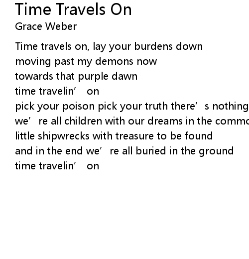 | Time travels on, lay your burdens down | |